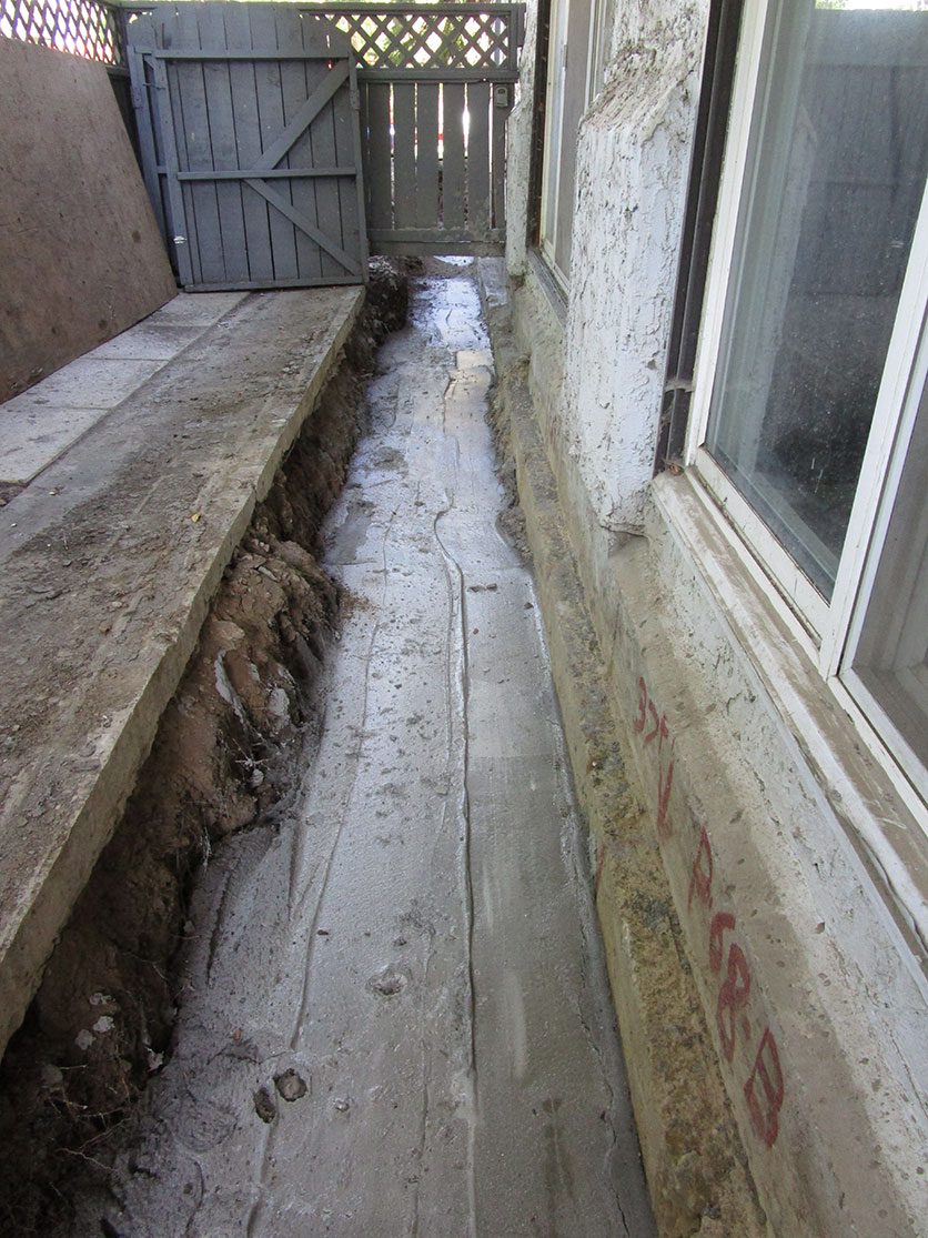 A 3-storey, 33 unit apartment building was experiencing movement and settlement on the entire exterior foundation as well as the interior bearing wall footings. The condominium group needed to have the foundation stabilized.  We assessed the pattern of settlement and put together an Engineered Plan for Underpinning Remediation using our Proprietary Steel Pipe Push Pile Technology.