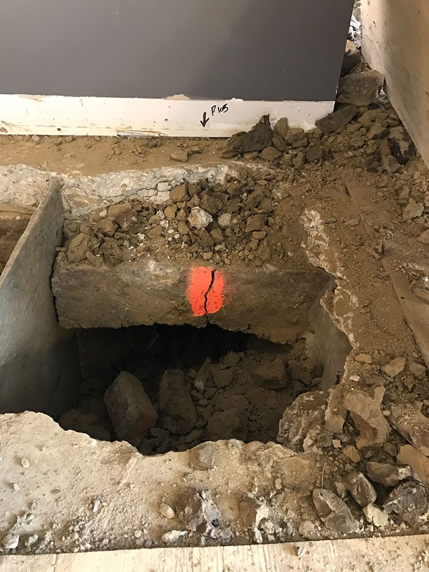 • Lower level had 6 occupied units. We were required to remove flooring, cabinets and fixtures to install piles. Careful scheduling was required to accommodate the unit owners